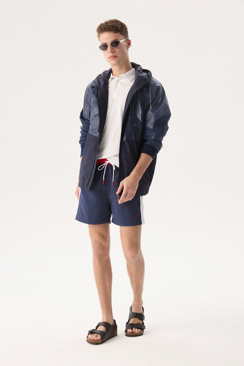 TELA EXTERIOR: Tela 1: Tejido liviano con membrana interior ( comunmente llamado laminado) que lo hace waterproof (lluvia) y windproof (viento). Su acabado es mate.